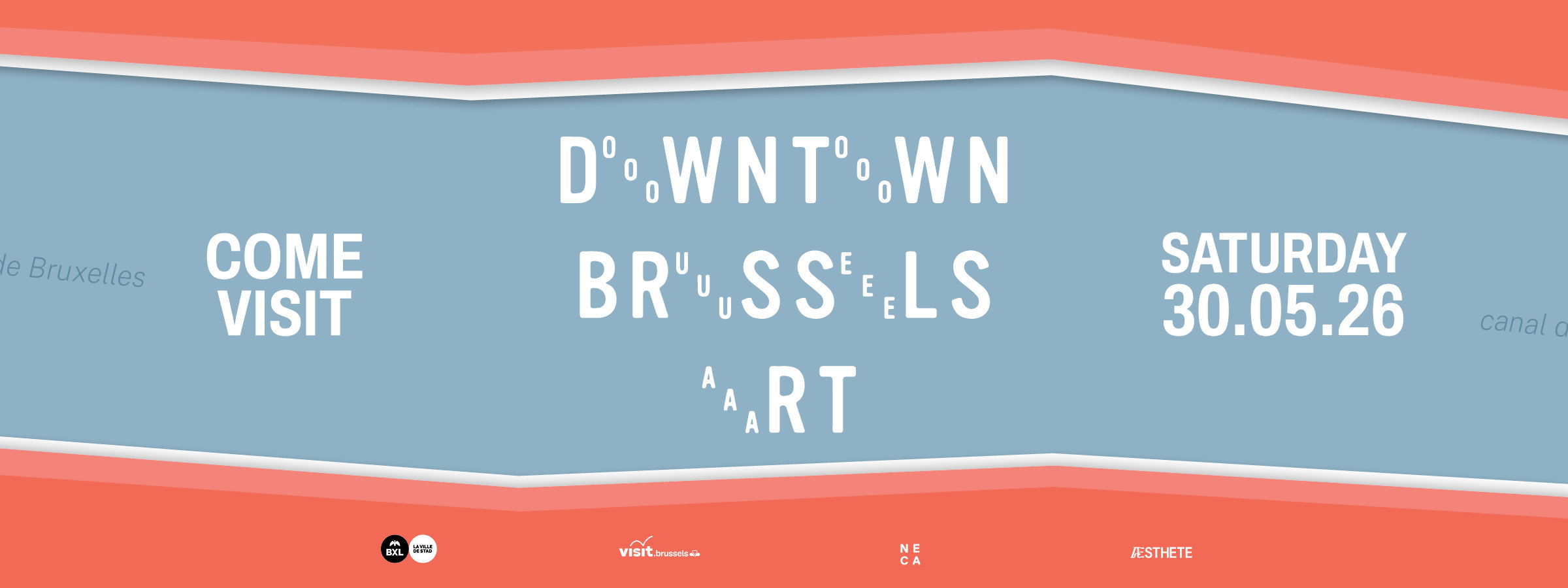 Downtown Brussels Art est soutenu par VISIT BRUSSELS, NECA, AESTHETE STUDIO et la Ville de Bruxelles.